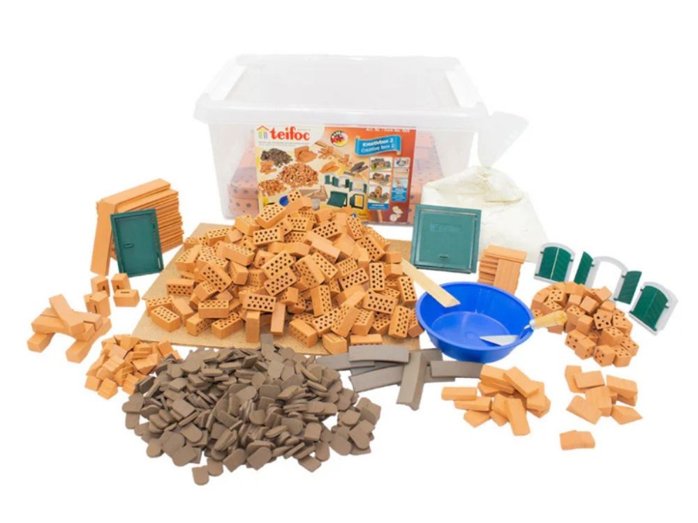Stavebnice Teifoc prinášajú autentický zážitok zo stavby vlastného statku z miniatúrnych tehličiek a vo vode rozpustnej malty. Deti si vyskúšajú, ako sa stavia skutočný dom, a precvičia si jemnú motoriku, trpezlivosť a priestorové myslenie.
