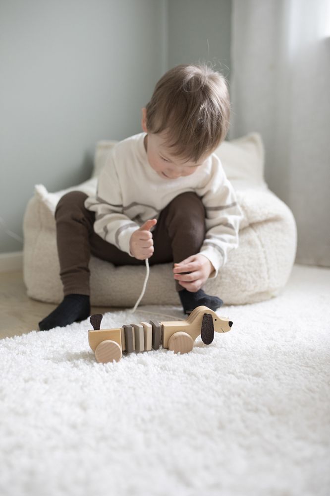 Drevená ťahacia hračka v podobe roztomilého jazvečíka v prírodných farbách bude skvelým spoločníkom detí, pri ich prvých pokusoch o pohyb. Tí najmenší budú psíka venčiť po štyroch a akonáhle začnú s prvými krôčikmi, psík ich bude nasledovať do všetkých miestností. Drevená ťahačka je skvelou mobilnou hračkou, vhodnou pre chlapcov aj dievčatká, ktorá sa bude vynímať na každej poličke.