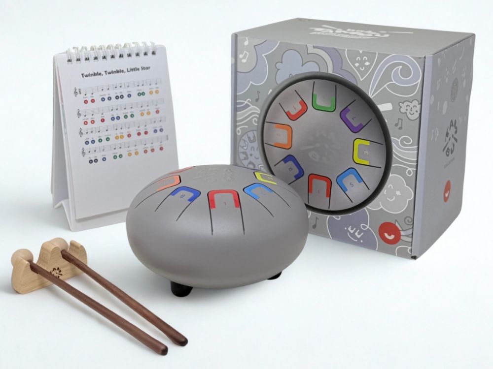TAMBÚ baby je melodický nástroj s jemným, zamatovým zvukom, ktorý prirodzene navodzuje pocit pokoja a uvoľnenia. Je ideálny pre deti aj dospelých, úplných začiatočníkov aj pokročilých. Vďaka farebnému a číselnému značeniu tónov je učenie jednoduché a intuitívne, takže sa do hrania môžete pustiť takmer okamžite, bez predchádzajúcich hudobných skúseností. Nástroj je ladený do diatonickej stupnice C dur (Sol), ktorá znie harmonicky a príjemne pri každom údere, či už hráte podľa nôt alebo len tak pre radosť. TAMBÚ je skvelým spoločníkom pre chvíle relaxácie, tvorivého objavovania aj spoločných hudobných zážitkov s deťmi. Súčasťou balenia sú aj jednoduché noty v anglickom jazyku.