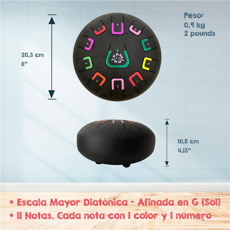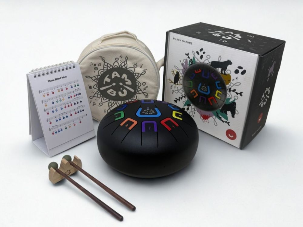 TAMBÚ je melodický nástroj s jemným, zamatovým zvukom, ktorý prirodzene navodzuje pocit pokoja a uvoľnenia. Je ideálny pre deti aj dospelých, úplných začiatočníkov aj pokročilých hráčov. Farebné a číselné označenie nôt uľahčuje učenie a je intuitívne, takže môžete začať hrať takmer okamžite, bez predchádzajúcich hudobných skúseností. Nástroj je naladený na diatonickú stupnicu G dur (Sol), ktorá znie harmonicky a príjemne pri každom údere, či už hráte podľa nôt alebo len tak pre zábavu. TAMBÚ je skvelým spoločníkom na chvíle relaxácie, tvorivého skúmania a spoločných hudobných zážitkov s deťmi. Súčasťou balenia sú aj jednoduché noty v angličtine.