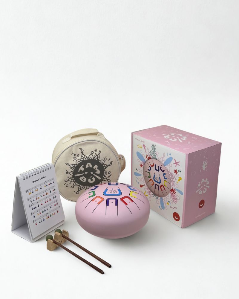 Nástroj je naladený na diatonickú stupnicu C dur (Sol), ktorá znie harmonicky a príjemne pri každom údere, či už hráte podľa nôt alebo len tak pre zábavu. TAMBÚ je skvelým spoločníkom na chvíle relaxácie, tvorivého objavovania a spoločných hudobných zážitkov s deťmi. Súčasťou balenia sú aj jednoduché noty v angličtine.