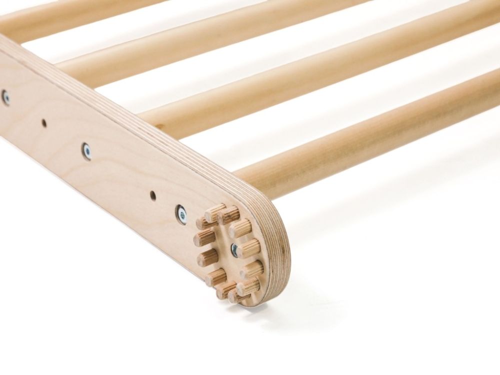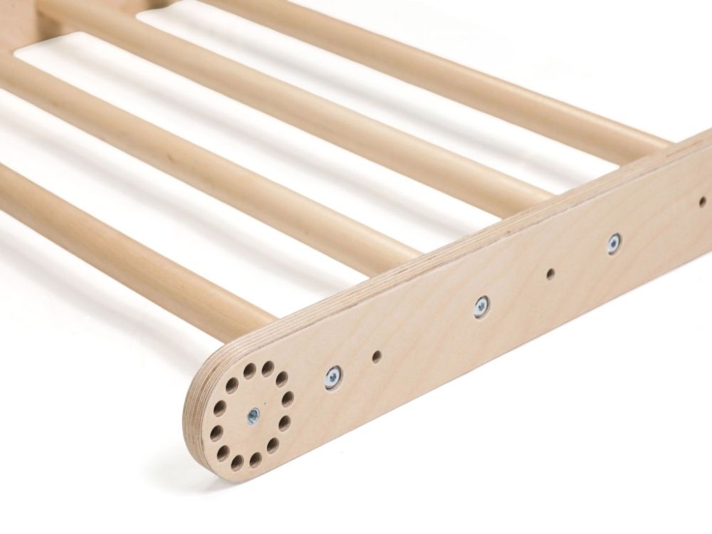 Vďaka kvalitnému spracovaniu z prírodného dreva je stabilný, pevný a bezpečný. Jednoduchý dizajn sa prirodzene hodí do detskej izby a premení ju na priestor, kde deti môžu bezpečne objavovať svoje pohybové možnosti a rozvíjať odvahu aj sebavedomie.