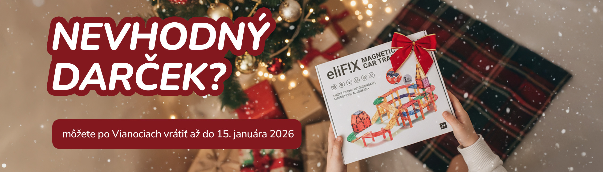 Občas sa to skrátka stane. Človek poctivo vyberá, číta recenzie a články, ale darček nakoniec úspech neslávi. Alebo sa naopak stretnú 2 rovnaké. S nami sa týchto situácií obávať nemusíte. Pre všetky vianočné darčeky nakúpené v období 1. 10. – 24. 12. 2025 máme predĺženú dobu vrátenia až do 15. 1. 2026. Upozorňujeme, že táto predĺžená lehota sa vzťahuje iba na vrátenie tovaru, výmena tovaru v tomto prípade nie je možná.